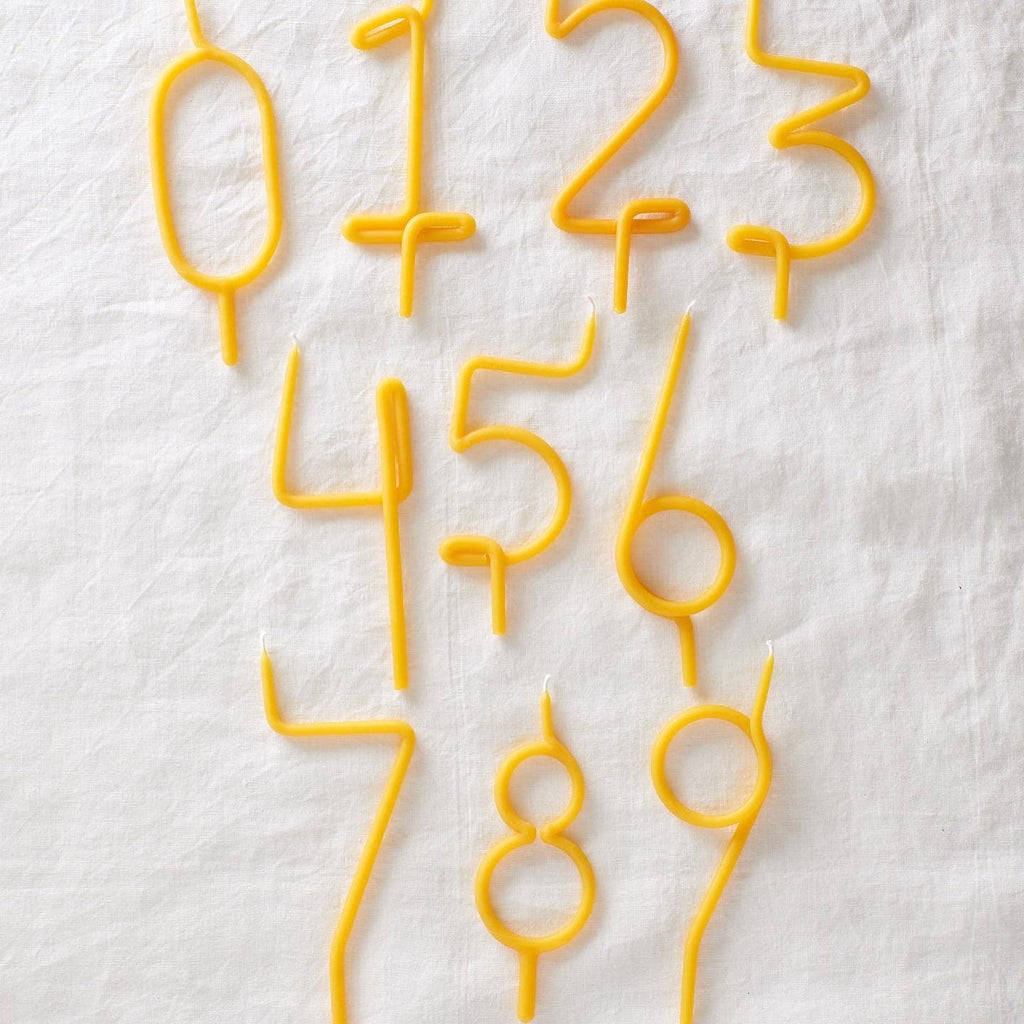 Styled after neon tube lights, these numbers are each hand-shaped from blanks that are hand-dipped using our sustainably harvested beeswax. Designed to burn cleanly for a few renditions of happy birthday.