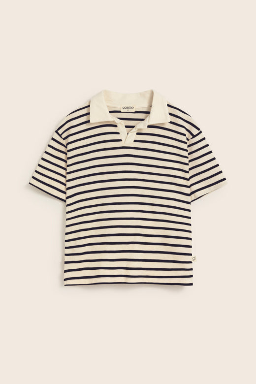 Cozmo Drake Striped Cotton Polo ~ Navy