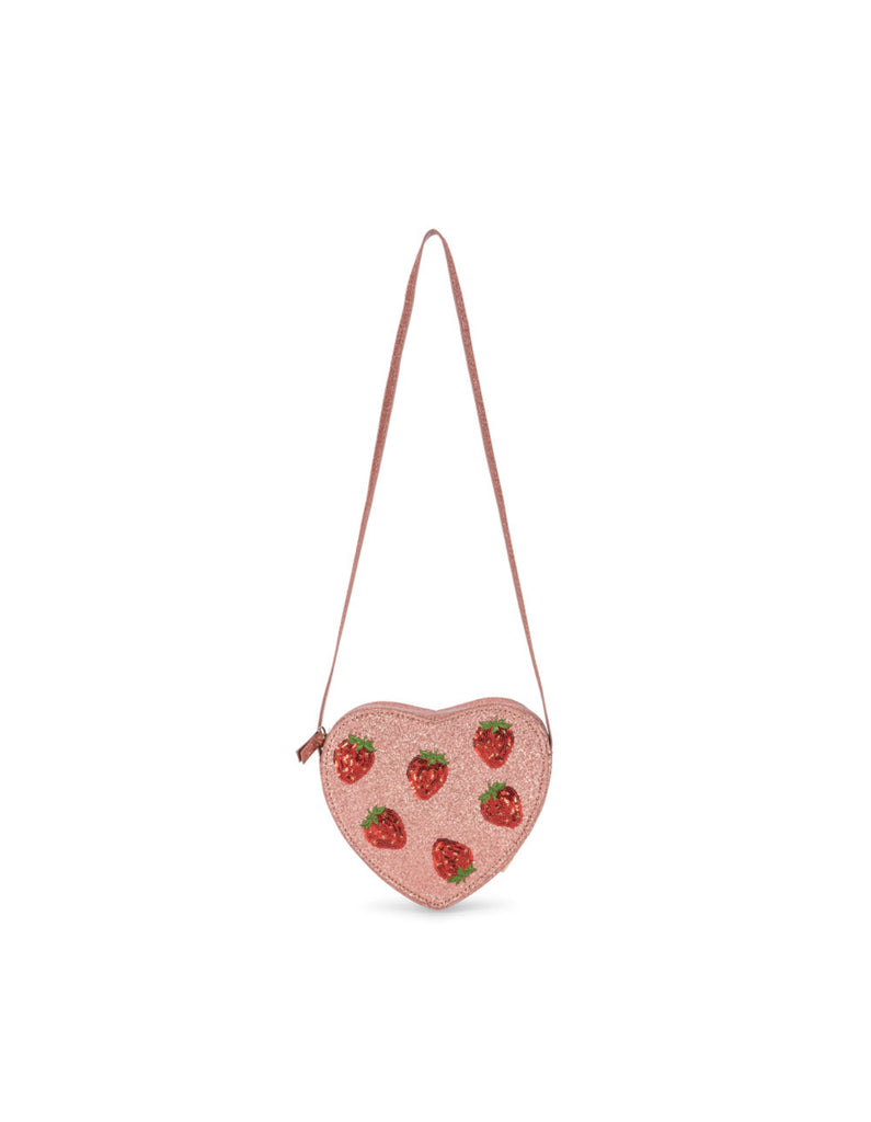 Heart shaped shoulder bag with glitter and a slim shoulder strap. Perfect for bringing all your little essentials on the go.