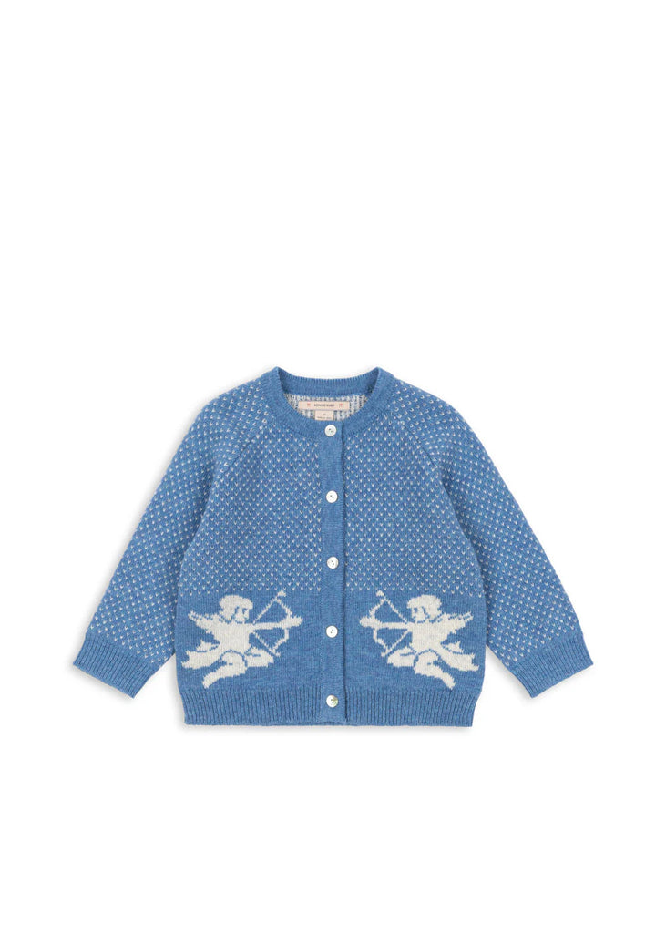 Soft and warm cardigan in a chunky wool blend. Finished with rib hems, regular round neck, and mother of pearl buttons in front.