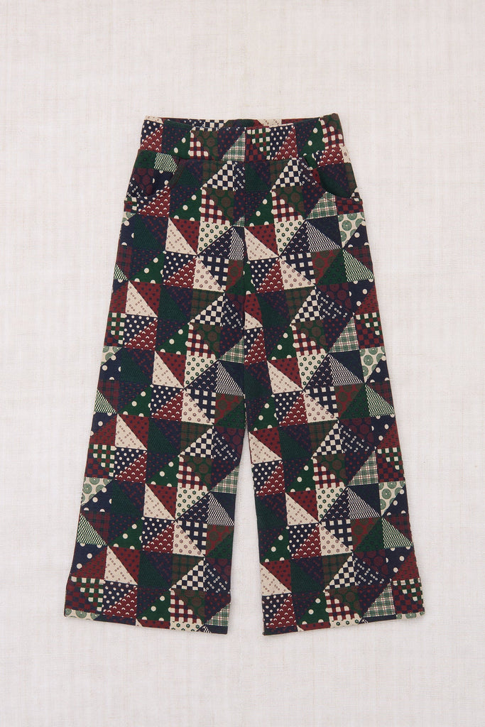A fitted pull-on pant in organic Pima cotton, featuring a slight A-shaped flare, front pockets, and a soft banded elastic waistband.