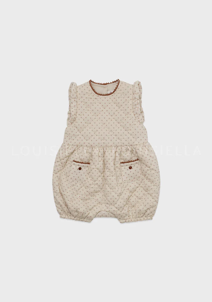 Matching our girl dress Sharuel, lovely baby girl romper in Louisiella's latest floral print. Its vintage-inspired floral has a serene atmosphere matching winter's mood. Its frilled collar and puffy silhouette makes it a timeless piece in your daughter's wardrobe.