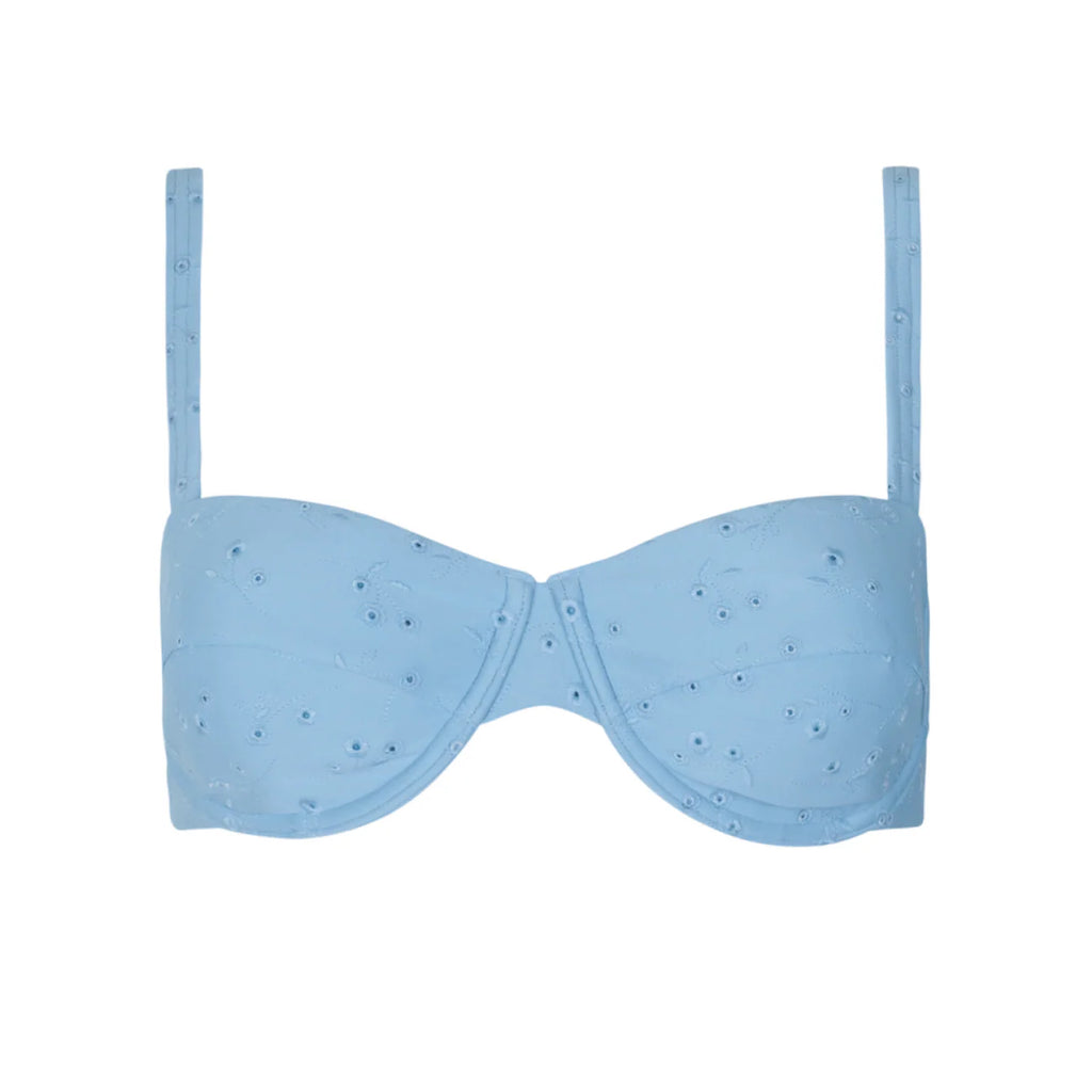 this women's bikini top features our stunning new eyelet detailing. designed to flatter with supportive moulded cups, this top pairs perfectly with the bikini bottom.