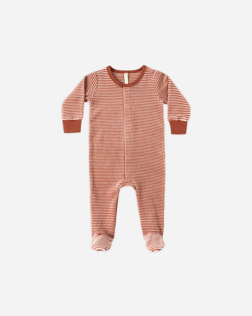 Long sleeve snap footie with hidden snap front placket in our velour fabric.
