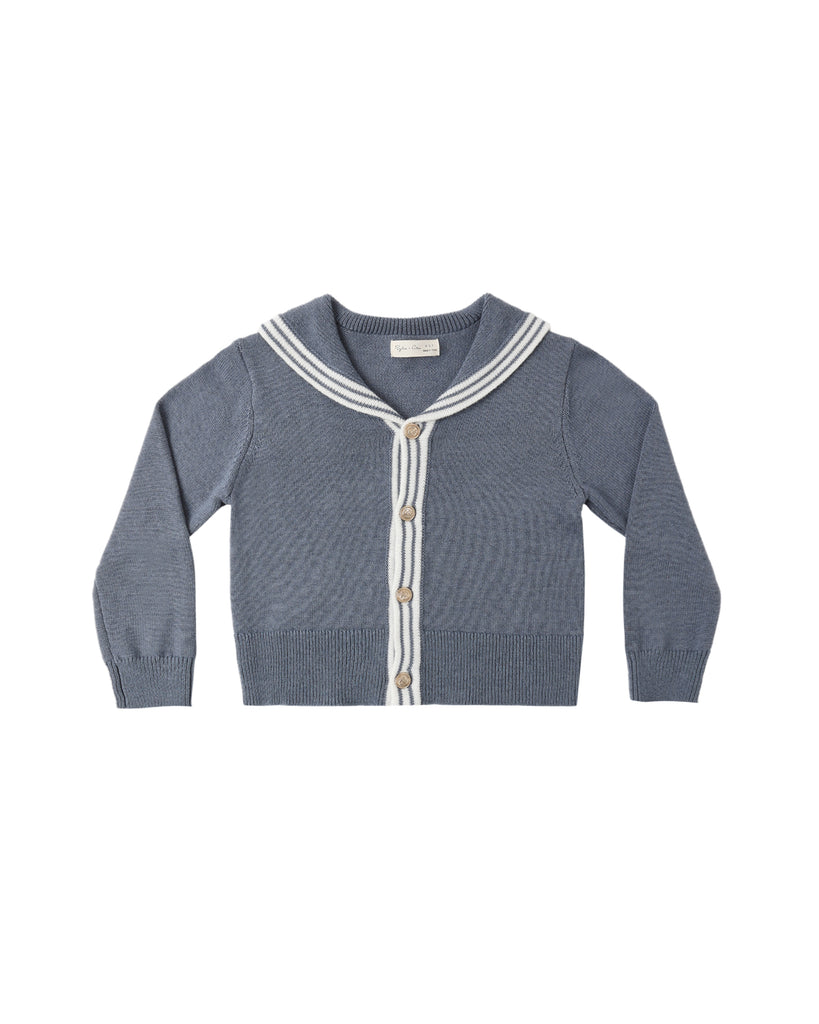 The pointelle Sloane Knit Top features a contrast knit scallop collar and faux shell buttons.