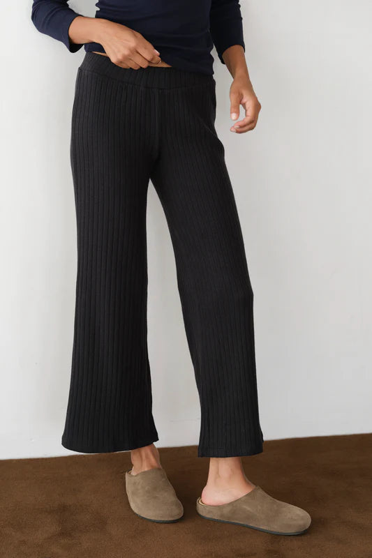 Crafted from super-soft and cozy sweater rib fabric. This pant features a straight leg, elastic waistband, and ribbed texture.